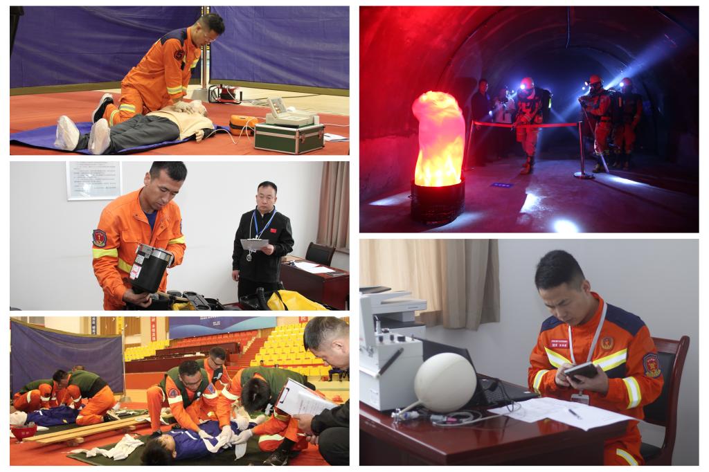 室外賽場(chǎng)競(jìng)技如火如荼,室內(nèi)賽場(chǎng)的比拼也是精彩紛呈。爭(zhēng)分奪秒的醫(yī)療急救環(huán)節(jié),上演“與時(shí)間競(jìng)速”的緊張場(chǎng)景;在煙霧彌漫的模擬“事故”區(qū)域,向戰(zhàn)而行的參賽隊(duì)員,則臨危不亂地進(jìn)行著現(xiàn)場(chǎng)狀況評(píng)估、傷員救治、災(zāi)區(qū)滅火、冒頂區(qū)支護(hù)、危險(xiǎn)巷道偵查、封閉火區(qū)等一項(xiàng)項(xiàng)比拼;災(zāi)害氣體分析競(jìng)賽現(xiàn)場(chǎng),空氣如凝滯一般,仿佛只能聽(tīng)見(jiàn)參賽隊(duì)員的心跳和儀表數(shù)據(jù)變化的聲響;呼吸器操作賽場(chǎng),圍繞參賽隊(duì)員排查呼吸器隱患的準(zhǔn)確性與故障修復(fù)的時(shí)效性,展開(kāi)測(cè)評(píng)與考核。