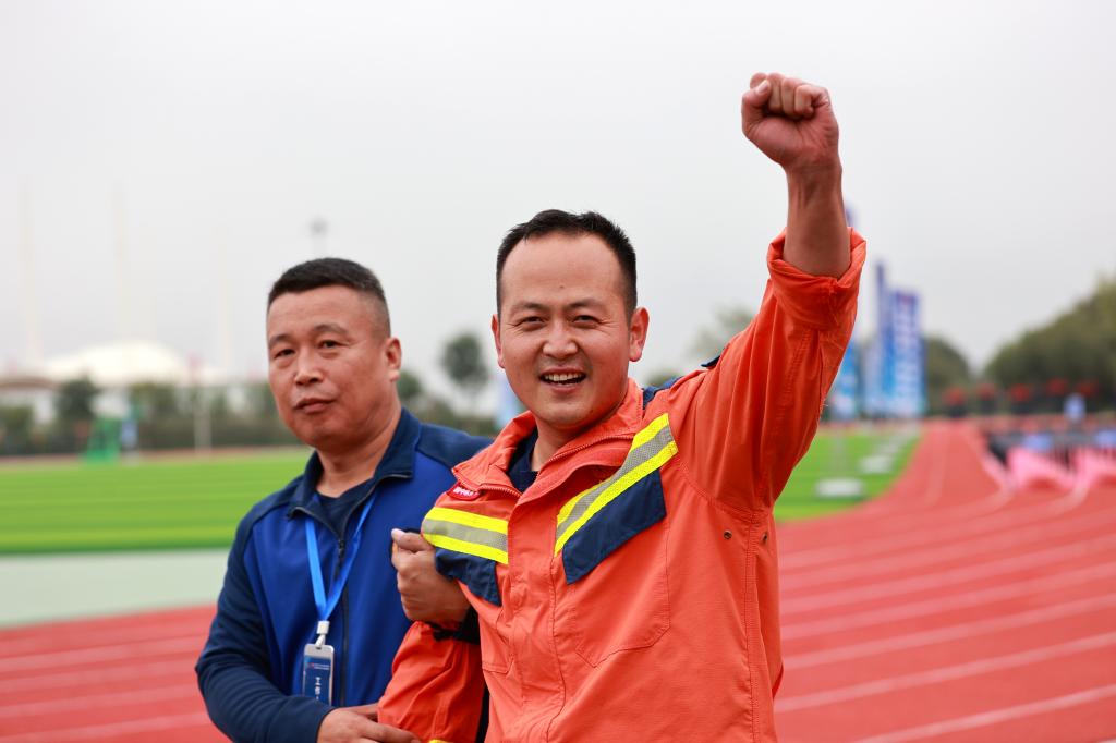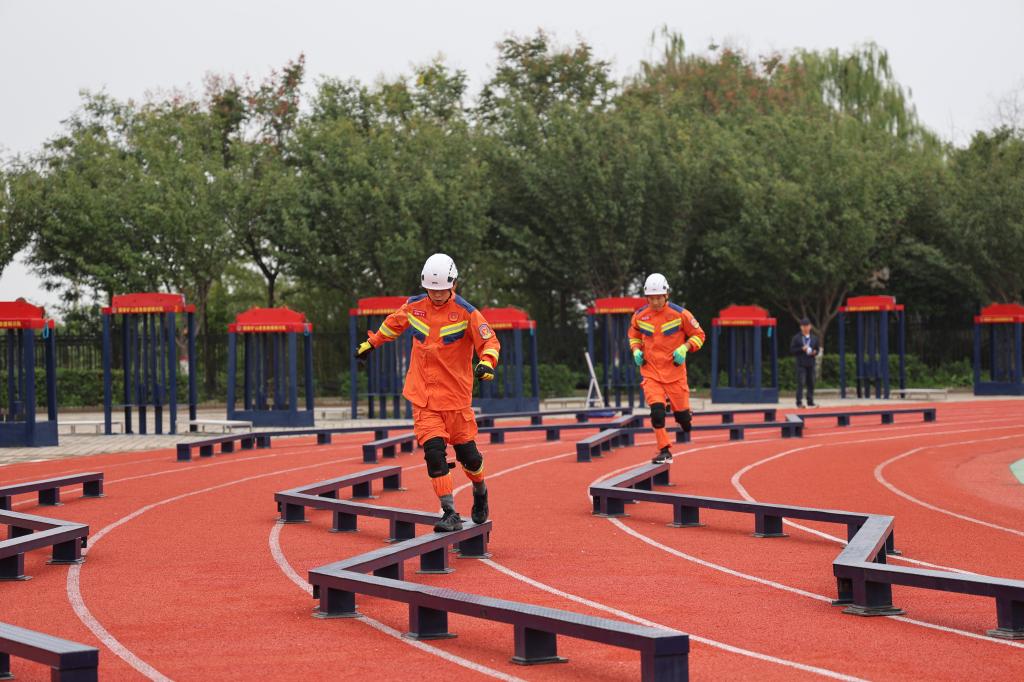 當(dāng)日上午和接下來(lái)的兩天,綜合技能競(jìng)賽現(xiàn)場(chǎng),高空攀繩、剪切破拆、匍匐過(guò)矮巷、蓄力翻輪胎、協(xié)調(diào)身姿過(guò)曲橋、扛著重物坡道運(yùn)物料、連續(xù)作業(yè)拋重物、瞄準(zhǔn)尺寸鋸木料等一項(xiàng)項(xiàng)的競(jìng)技比拼不斷上演,以上項(xiàng)目必須在8分鐘之內(nèi),按要求時(shí)間完成,這些項(xiàng)目對(duì)參賽隊(duì)員的體能、耐力是近乎接近“體能極限”的考驗(yàn),項(xiàng)目超時(shí)將扣分,超過(guò)10分鐘將被終止比賽。許多參賽隊(duì)員完成項(xiàng)目時(shí)已是大汗淋漓,有的已疲憊不堪,需要近旁的人員攙扶著走向休息區(qū)域。
