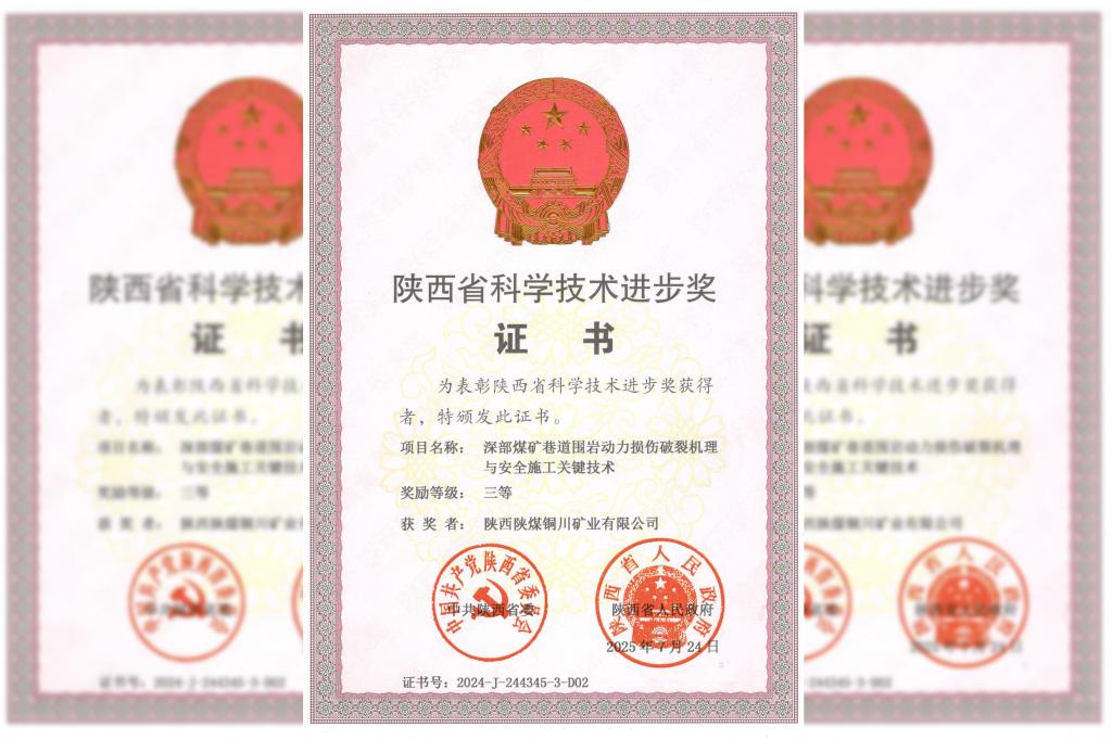 近日,中共陜西省委辦公廳公布了《中共陜西省委陜西省人民政府關(guān)于2024年度陜西省科學(xué)技術(shù)獎(jiǎng)勵(lì)的決定》,公司《深部煤礦巷道圍巖動(dòng)力損傷破裂機(jī)理與安全施工關(guān)鍵技術(shù)》科研項(xiàng)目獲得陜西省科學(xué)技術(shù)進(jìn)步三等獎(jiǎng)。