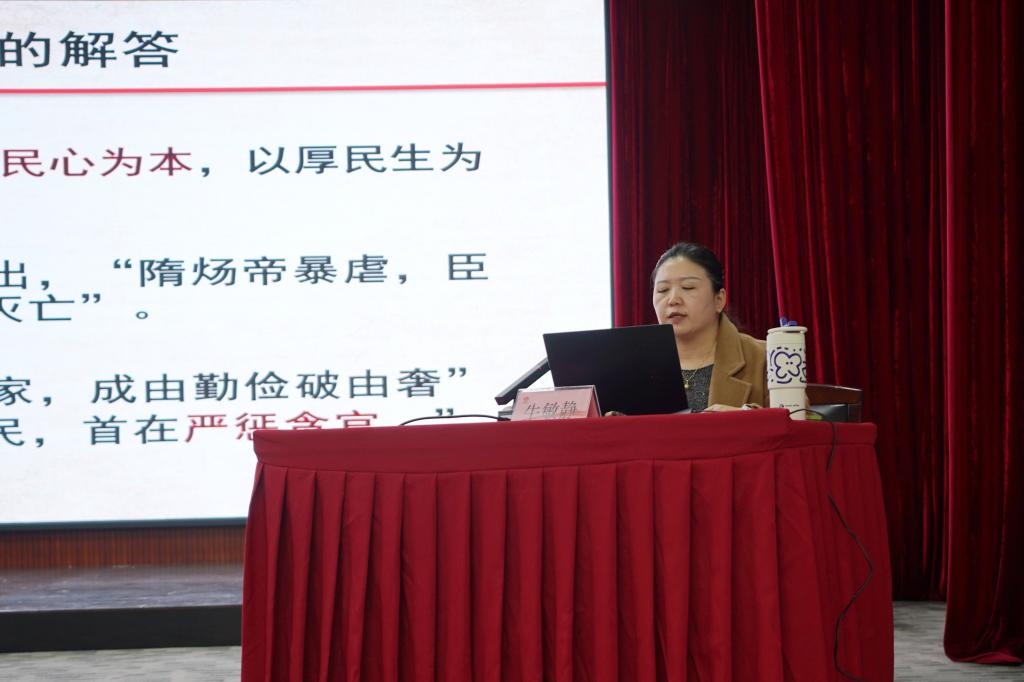 牛敏靜教授向大家講解了全面從嚴治黨的重要性、加強黨同廉政建設(shè)、推進黨的自我革命、加強黨的領(lǐng)導(dǎo)、增強黨的創(chuàng)造力、加強黨員干部教育培訓(xùn)、加強黨的社會基礎(chǔ)工作等方面對如何堅定不移推進黨的自我革命進行了注解。通過解讀,深刻闡明了全面從嚴治黨、推進黨的自我革命是新時代中國共產(chǎn)黨的重要任務(wù),也是實現(xiàn)中華民族偉大復(fù)興的關(guān)鍵所在。只有堅持全面從嚴治黨和自我革命的要求,才能保證我們黨永遠走在時代前列,促進黨和國家事業(yè)的長遠發(fā)展。