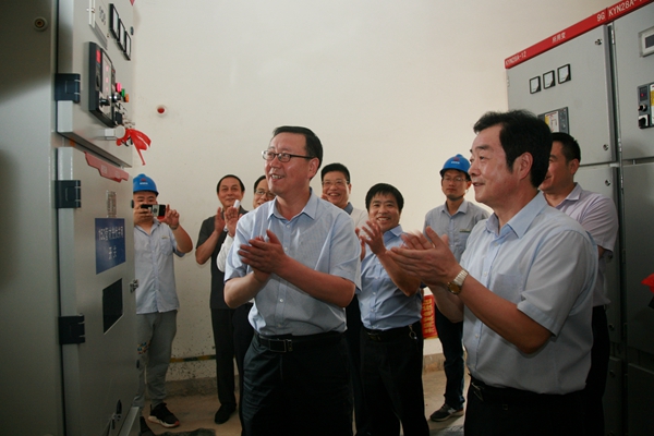 在與會人員共同關(guān)注和熱烈掌聲中,劉水利與郭和平共同啟動并網(wǎng)開關(guān)。