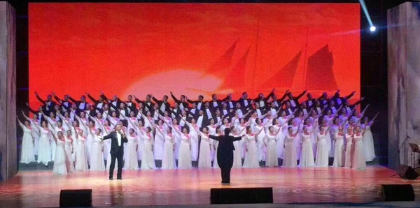 在《新時(shí)代揚(yáng)帆遠(yuǎn)航》合唱中,由唱紅祖國(guó)大江南北的《唱支山歌給黨聽(tīng)》的詞作者——八十多歲高齡的銅煤礦工姚筱舟引領(lǐng)童真女孩驚喜登臺(tái),通過(guò)老少演唱《唱支山歌給黨聽(tīng)》引出了合唱團(tuán)激情豪邁的演唱,通過(guò)《唱支山歌給黨聽(tīng)》與《新時(shí)代揚(yáng)帆遠(yuǎn)航》的完美融合,唱出了銅煤人立足新起點(diǎn),克難攻堅(jiān)、銳意前行,推動(dòng)企業(yè)改革發(fā)展、轉(zhuǎn)型升級(jí)、追趕超越的堅(jiān)強(qiáng)決心和豪邁英姿。