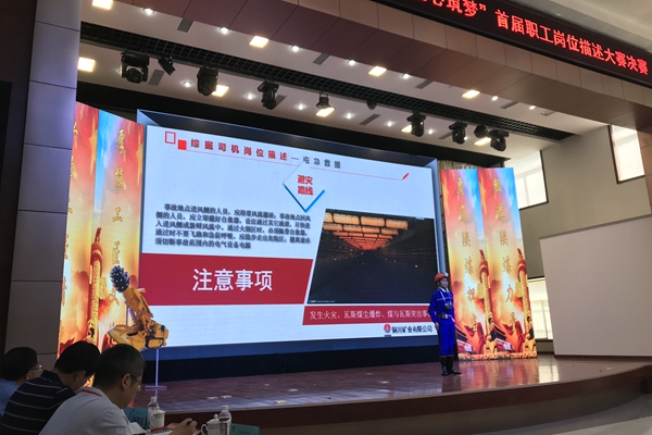 本次決賽經(jīng)過層層選拔和預(yù)賽,最終來自集團(tuán)公司18家單位的19組選手闖進(jìn)決賽。決賽現(xiàn)場(chǎng),每組選手借助PPT和道具演示,分別從崗位基本情況、崗位關(guān)系、崗位工作職責(zé)、崗位設(shè)備性能及使用方法、崗位工作流程、崗位精細(xì)化管理、崗位風(fēng)險(xiǎn)評(píng)估、災(zāi)害治理、安全管理、應(yīng)急救援、事故案例等11個(gè)方面,采取現(xiàn)場(chǎng)指定崗位描述部分的方式,崗位描述時(shí)間只有10分鐘左右。方英照在抽到崗位精細(xì)化管理和應(yīng)急救援兩個(gè)部分后,以精準(zhǔn)流利的描述,借助PPT和準(zhǔn)軍事化的肢體語(yǔ)言,贏得了現(xiàn)場(chǎng)觀眾的陣陣掌聲,最終取得了二等獎(jiǎng)的好成績(jī)。