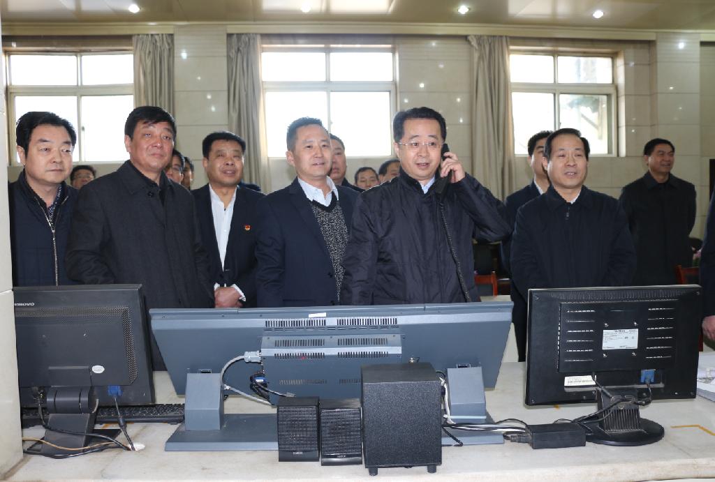 陸治原一行到礦后,首先來到礦信息監(jiān)控調(diào)度指揮中心,查看了井下生產(chǎn)現(xiàn)場(chǎng)實(shí)時(shí)視頻監(jiān)控和人員定位系統(tǒng)運(yùn)行情況,詳細(xì)詢問了礦井概況、災(zāi)害治理、煤質(zhì)管理、經(jīng)營(yíng)銷售等工作和節(jié)日期間安全工作安排部署情況。他通過視頻電話與井下當(dāng)班帶班干部、綜采隊(duì)黨支部書記侯利紅進(jìn)行了視頻通話,他說:“快過年了,我代表省委、省政府向堅(jiān)守在井下生產(chǎn)一線的煤礦干部職工拜個(gè)早年,你們一定要注意安全”。在與省局和公司相關(guān)領(lǐng)導(dǎo)交流中,陸治原還詳細(xì)詢問了銅川礦業(yè)公司積極主動(dòng)推進(jìn)去產(chǎn)能任務(wù)落實(shí)情況以及領(lǐng)導(dǎo)干部下井帶班、瓦斯治理、防治水、防滅火等工作進(jìn)展情況。