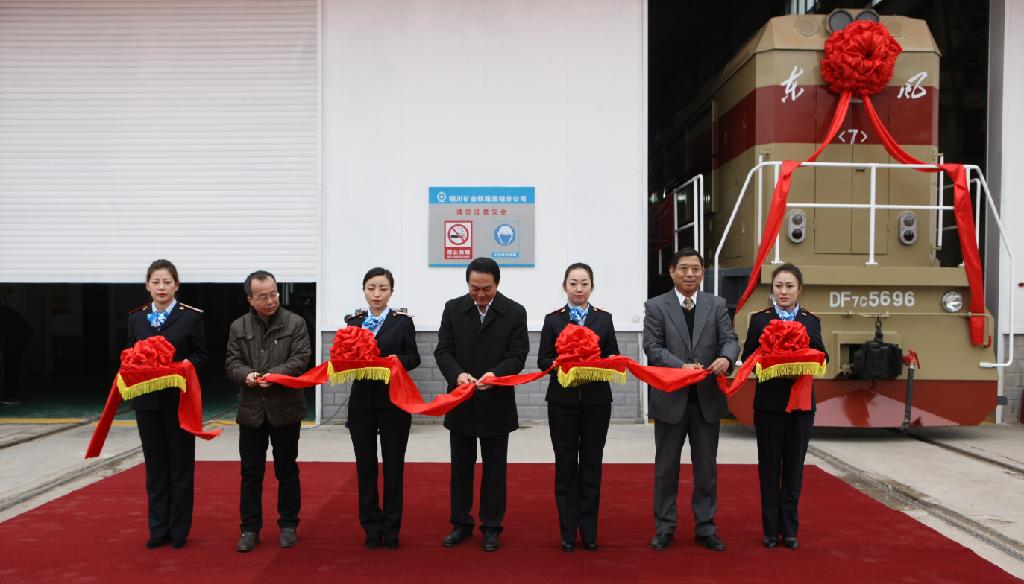 在熱烈的掌聲中,礦業(yè)公司副總經(jīng)理、總工程師師同民,北京東風電器有限公司董事長齊富彬,白銀有色鐵路運輸物流有限公司經(jīng)理張建設為機車中修竣工剪彩。剪彩儀式結(jié)束后,中修完畢的機車緩緩駛出車庫,與會人員進入檢修車庫進行了現(xiàn)場參觀。隨后在鐵運分公司會議室,觀看了展示銅煤鐵運發(fā)展史的專題片,并進行了座談交流。
