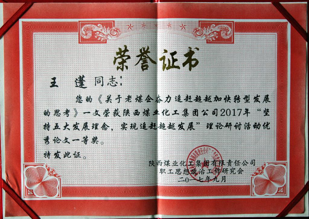 近日,陜煤集團公司政研會2017年“堅持五大發(fā)展理念,實現(xiàn)追趕超越發(fā)展”理論研討活動優(yōu)秀理論文章和優(yōu)秀組織單位評比揭曉,公司被陜煤集團評為年度理論研討活動優(yōu)秀組織獎,并有2篇論文分獲一等獎和優(yōu)秀獎。