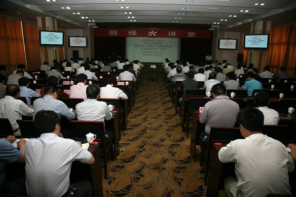 5月29日下午,公司銅煤大講堂第二期講座在煤業(yè)賓館開講。講座邀請經(jīng)濟(jì)學(xué)博士、中國人民大學(xué)世界經(jīng)濟(jì)研究中心主任、中國人民大學(xué)原經(jīng)濟(jì)學(xué)院院長黃衛(wèi)平教授,為聽取講座人員就當(dāng)前經(jīng)濟(jì)形勢作了精彩的專題講座。公司領(lǐng)導(dǎo)郭寶輝、徐捷、師同民、公司各副總、公司機(jī)關(guān)各部室負(fù)責(zé)人、公司所屬各單位有關(guān)領(lǐng)導(dǎo)、管理干部和相關(guān)人員,共190余人聆聽了講座。