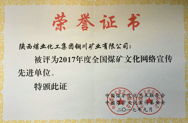 9月15日,從中國(guó)煤礦文聯(lián)第四屆理事會(huì)第八次(擴(kuò)大)會(huì)上傳來(lái)喜訊,銅川礦業(yè)公司被授予2017年度全國(guó)煤礦文化網(wǎng)絡(luò)宣傳先進(jìn)單位,以及《陽(yáng)光》雜志編務(wù)工作先進(jìn)單位榮譽(yù)。