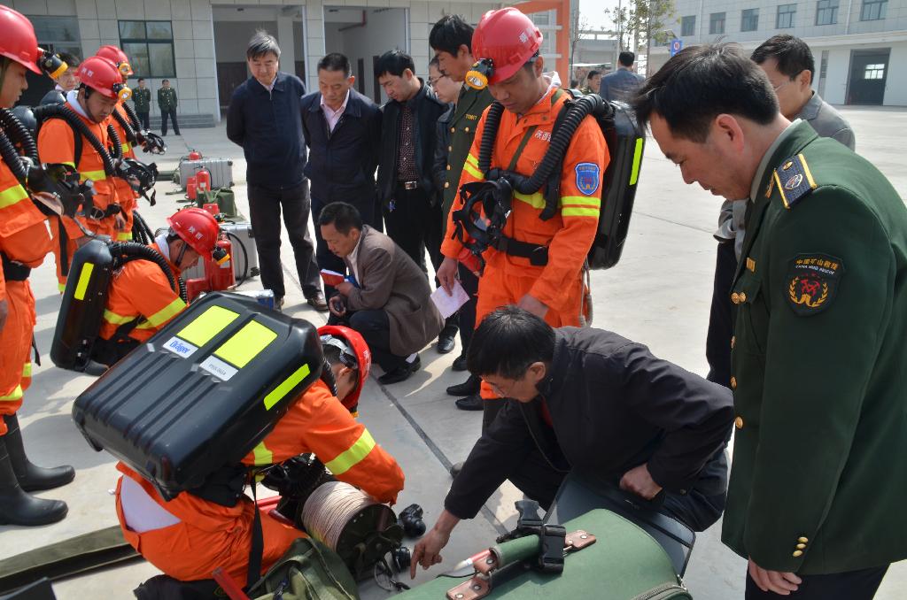 隨后,檢查團(tuán)按照《礦山救護(hù)隊(duì)質(zhì)量標(biāo)準(zhǔn)化考核規(guī)范》的相關(guān)規(guī)定,分別對(duì)大隊(duì)和市區(qū)中隊(duì)質(zhì)量標(biāo)準(zhǔn)化建設(shè)基礎(chǔ)資料、軍事化隊(duì)列訓(xùn)練、聞警出動(dòng)、戰(zhàn)前檢查、庫(kù)房管理、技術(shù)操作等項(xiàng)目進(jìn)行了檢查驗(yàn)收。