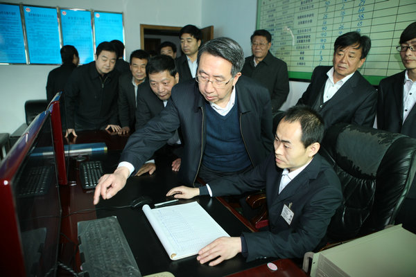 黃玉治一行到礦后,到該礦瓦斯監(jiān)測(cè)監(jiān)控室、生產(chǎn)調(diào)度室,查看了該礦安全生產(chǎn)、瓦斯治理、安全監(jiān)測(cè)工作進(jìn)展情況。隨后,在陜西煤礦安全監(jiān)察局局長(zhǎng)張學(xué)常主持下,在該礦調(diào)度會(huì)議室召開了座談會(huì)。