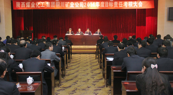 考核組一行到達公司后,在煤業(yè)賓館組織召開了陜西煤業(yè)化工集團銅川礦業(yè)公司2014年度目標(biāo)責(zé)任考核大會??己舜髸杉瘓F公司總經(jīng)理助理、機關(guān)黨委書記、黨群工作部部長夏迎廣主持。公司領(lǐng)導(dǎo)班子全體成員、集團公司第一考核組成員、公司副總、公司機關(guān)部室負責(zé)人、各基層單位黨政領(lǐng)導(dǎo)及職工代表共100余人參加了考核大會。