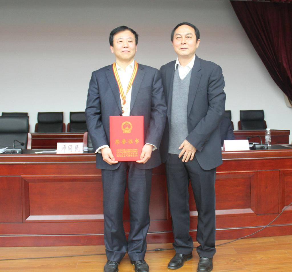 師同民為全國(guó)煤礦瓦斯防治先進(jìn)個(gè)人蘇啟慧頒獎(jiǎng)