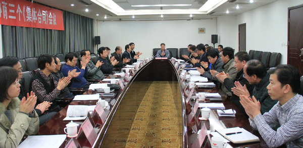會(huì)上,企業(yè)方和職工方介紹了出席本次會(huì)議的人員。按照按章節(jié)宣讀、現(xiàn)場(chǎng)討論協(xié)商的辦法,工作人員先后宣讀了《銅川礦業(yè)公司(局)2015-2017年集體合同》、《銅川礦業(yè)公司(局)2015-2017年女職工權(quán)益保護(hù)專項(xiàng)集體合同》和《銅川礦業(yè)公司(局)2015年工資集體協(xié)商合同》三個(gè)《集體合同》,與會(huì)人員對(duì)三個(gè)《集體合同》分別進(jìn)行了平等協(xié)商。會(huì)議自始至終氣氛熱烈融洽,企業(yè)方代表和職工方代表都發(fā)表了自己的意見和看法,形成的修改意見由起草人一并記錄,經(jīng)商榷后,逐一修改,充分體現(xiàn)了公平和民主。郭寶輝指出,為了做好公司(局)三個(gè)《集體合同》的協(xié)商工作,礦區(qū)工會(huì)和公司勞社部對(duì)三個(gè)《集體合同》在往年的基礎(chǔ)上進(jìn)行了初步修改,并將修改的草案送達(dá)到公司總經(jīng)理辦公室、黨委辦公室、企管部、勞社部等多個(gè)職能部門進(jìn)行修改意見的征求,在廣泛吸收大家的意見的基礎(chǔ)上,公司(局)三個(gè)《集體合同》文本草案最終形成。討論結(jié)束后,在與會(huì)人員的熱烈掌聲中,通過了三個(gè)《集體合同》,并要交陜煤化集團(tuán)公司、陜煤化集團(tuán)公司工會(huì)備份,報(bào)請(qǐng)當(dāng)?shù)貏趧?dòng)行政部門和集團(tuán)公司審查后,交由職工代表大會(huì)通過后方生效。