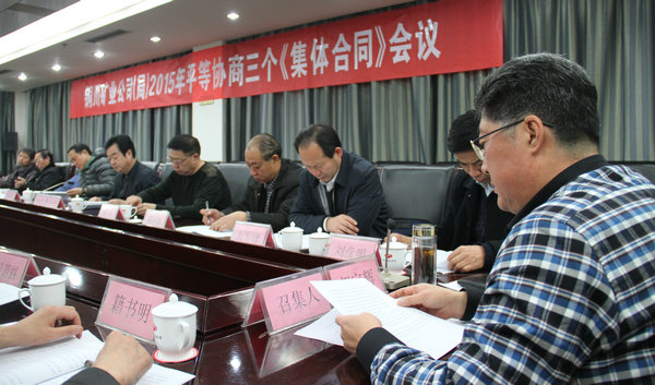 為進(jìn)一步規(guī)范企業(yè)協(xié)商和簽訂《集體合同》行為,依法維護(hù)企業(yè)和職工雙方的合法權(quán)益,促進(jìn)勞動(dòng)關(guān)系和諧穩(wěn)定,維護(hù)企業(yè)正常的安全生產(chǎn)和工作秩序,12月23日上午,公司(局)召開2015年平等協(xié)商三個(gè)《集體合同》會(huì)議。公司黨委書記郭寶輝作為會(huì)議召集人并主持會(huì)議。企業(yè)方代表為公司領(lǐng)導(dǎo)劉水利、師同民、薛鳴及規(guī)劃、安監(jiān)、勞資、企管、財(cái)務(wù)等部門負(fù)責(zé)人,礦區(qū)工會(huì)主席劉啟科攜職工代表等代表職工方出席會(huì)議,公司兩辦、紀(jì)委、組織、宣傳、人事、團(tuán)委、報(bào)社等負(fù)責(zé)人列席了會(huì)議。
