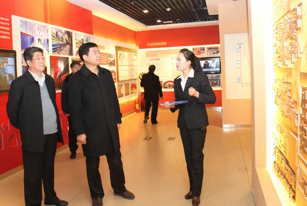 12月8日下午,銅川市副市長何尚民、市政府副秘書長井益田、市文物旅游局局長惠善利在公司黨委書記郭寶輝陪同下到銅煤文化展覽館參觀。