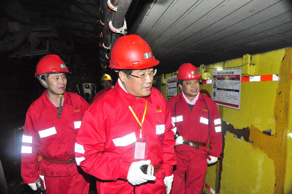 在當天的四季度安全質(zhì)量標準化檢查中,郭寶輝書記在公司副總工程師賈林安、安監(jiān)部領(lǐng)導(dǎo)延永華和該礦礦長岳東、黨委書記田戰(zhàn)強、副礦長雷鐵山的陪同下,深入該礦井下檢查調(diào)研四季度質(zhì)量標準化及安全生產(chǎn)精細化工作。郭寶輝書記一行在井下中央變電所和中央水泵房,詳細詢問了礦井機電動力設(shè)備安全及礦井防治水情況,對崗位作業(yè)人員持證上崗、按章作業(yè)等情況進行了檢查,對電氣設(shè)備安全標志、合格證、運行及檢修記錄、水泵房各項設(shè)備運行情況進行了查看。隨后,郭寶輝書記前往2406綜采工作面檢查調(diào)研,沿途仔細查看了井下移動式救生艙,詢問了礦井六大避險系統(tǒng)建設(shè)情況。在2406綜采工作面,郭寶輝書記詳細調(diào)研了解綜采設(shè)備運轉(zhuǎn)和工作面的安全生產(chǎn)情況,并親切慰問了正在現(xiàn)場檢修設(shè)備的職工,叮囑他們要時刻注意安全,為企業(yè)改革發(fā)展貢獻力量。