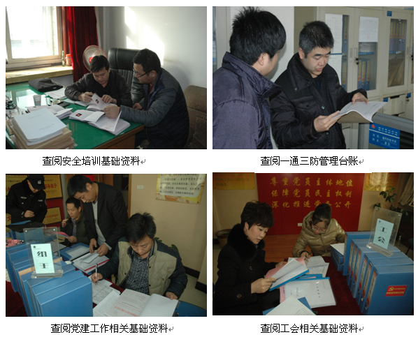 在地面檢查的公司黨群綜合檢查團成員及質(zhì)量標準化檢查團成員,分專業(yè)對黨群各項工作、質(zhì)量標準化各項內(nèi)容及安全生產(chǎn)精細化管理12項要素基礎(chǔ)資料進行了認真細致的查閱。重點對礦井精品工程創(chuàng)建、精細化管理12項要素、”一通三防“等工作管理臺賬逐項進行驗收考核。與此同時,公司黨群綜合檢查團在礦四樓會議室與來自基層不同崗位的職工代表進行了現(xiàn)場座談,并就干部選拔任用和治安綜合治理情況進行了問卷調(diào)查,聽取了職工代表們對該礦新一屆領(lǐng)導(dǎo)班子履新以來的工作評價、黨建工作創(chuàng)新以及對公司、礦黨群各部門工作評價等方面的意見和建議。