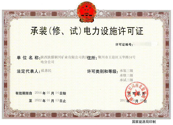近日,國家能源局西北監(jiān)管局為供用電分公司頒發(fā)了承裝(修、試)電力設(shè)施許可證(承裝三級、承修三級、承試三級)。該資質(zhì)的獲得使供用電分公司成為了陜煤集團(tuán)內(nèi)部唯一一家具有三項(xiàng)三級電力資質(zhì)許可證的單位,為落實(shí)礦業(yè)公司走出去發(fā)展戰(zhàn)略奠定了堅(jiān)實(shí)基礎(chǔ)。
