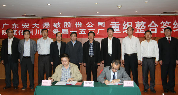簽約儀式上,廣東宏大爆破股份有限公司副總經(jīng)理周育生,銅川礦務(wù)局副局長(zhǎng)薛鳴代表雙方簽署了組建銅川宏大民爆有限責(zé)任公司合資協(xié)議書(shū)。一五三廠黨委負(fù)責(zé)人、廠長(zhǎng)申聯(lián)選在會(huì)上作了表態(tài)發(fā)言。