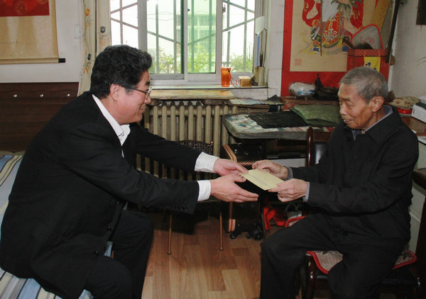一走進《唱支山歌給黨聽》詞作者、老黨員、公司離休干部姚筱舟家中,郭寶輝就拉著老人的手拉家常、話冷暖。姚筱舟1958年創(chuàng)作的詩歌《唱支山歌給黨聽》,被雷鋒抄在日記里,后被上海音樂學院教師朱踐耳譜成曲子,經藏族女歌手才旦卓瑪演唱,1965年被文化部評為全國優(yōu)秀群眾歌曲,歌曲唱紅了大江南北。郭寶輝說,今天是中華人民共和國成立65周年,我代表公司黨政來看看您老人家,祝您晚年身體健康,生活幸福。臨行前,郭寶輝握著姚筱舟老人的手,再三囑咐老人一定要保重身體,有什么困難和需要幫助及時向組織反映。姚筱舟老人對郭寶輝一行的到來和組織的關懷表示感謝,他說,我在煤礦成長,煤礦培育了我,愿為煤礦事業(yè)發(fā)揮作用、奉獻余熱。