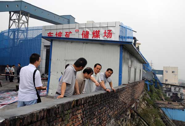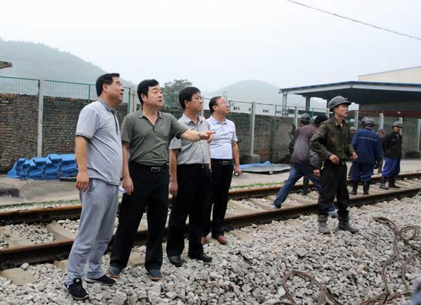 在指導東坡礦落實煤場護坡?lián)屝拗卫砉ぷ鞯耐瑫r,9月11日,郭寶輝一行還帶著對礦井安全生產(chǎn)工作的關注與牽掛,冒雨到金華山礦紅土煤場就雨季“三防”工作落實情況進行了現(xiàn)場檢查指導。在金華山礦紅土煤場的巡查指導中,郭寶輝一邊巡查,一邊仔細詢問該礦安全生產(chǎn)經(jīng)營工作情況和雨季“三防”工作落實情況匯報。郭寶輝強調(diào)指出,近日陰雨連綿,煤場儲煤量加大,給雨季“三防”工作帶來很大壓力,金華山礦領導班子要在抓好安全生產(chǎn)經(jīng)營工作的同時,切實把雨季“三防”各項措施落到實處,特別是在煤場進行回煤操作時,工作人員要遠離煤墻,防止出現(xiàn)危險情況,同時要對煤場部分圍墻進行加固,并組織專人進行安全檢查,強化現(xiàn)場管理,超前排除隱患,切實落實責任,確保煤場安全生產(chǎn)工作正常進行。