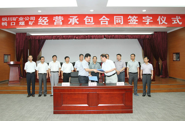 在熱烈的掌聲中,公司常務(wù)副總經(jīng)理、安監(jiān)局長劉水利代表銅川礦業(yè)公司和鴨口煤礦黨委書記、行政負責(zé)人蘭阿利在承包合同書上鄭重簽字,這是銅川礦業(yè)對內(nèi)挖潛,轉(zhuǎn)變機制,應(yīng)對市場“嚴冬”的又一重大舉措。