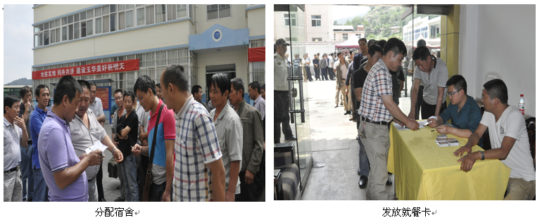 在礦單身職工公寓前,工作人員為新到礦的人員發(fā)放了就餐卡,辦理了入住手續(xù)。原鴨口公司開拓準備隊隊長王金喜,黨支部書記仇少貴代表全隊干部職工表示,要盡快融入金華山礦新家庭,熟悉工作環(huán)境,團結(jié)協(xié)作,凝心聚力,為構(gòu)建和諧幸福美麗的金華山礦區(qū)作出新的更大的貢獻。
