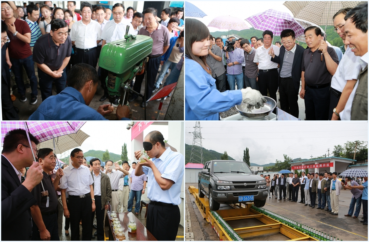 隨后,薛庚武副局長一行深入該礦綜掘一隊、調度室、監(jiān)測監(jiān)控中心、機電車間、選運區(qū)技能展示場地、欣怡廣場、欣怡食苑和井口安全文化長廊等地,觀看了基層職工崗前禮儀十步曲演練和“雙述”演練,查看了礦井各區(qū)域實時網絡監(jiān)控系統(tǒng)運轉情況,現場觀摩了該礦在推行“五精”管理、落實全員“雙述”、拓展“三功兩素”、提升職工安全素質、強化全員創(chuàng)新過程中提煉升華出的氣錘砸雞蛋、蒙眼割圓、電鉆鉆雞蛋、手抓鐵釘知重量、聞油識型號、速報各類物資材料信息、叉車開啤酒瓶、皮卡車走鋼絲繩等職工技能項目展示,對該礦一線職工超群的素質和精湛的技藝以及礦井規(guī)范化管理取得的成果贊不絕口。