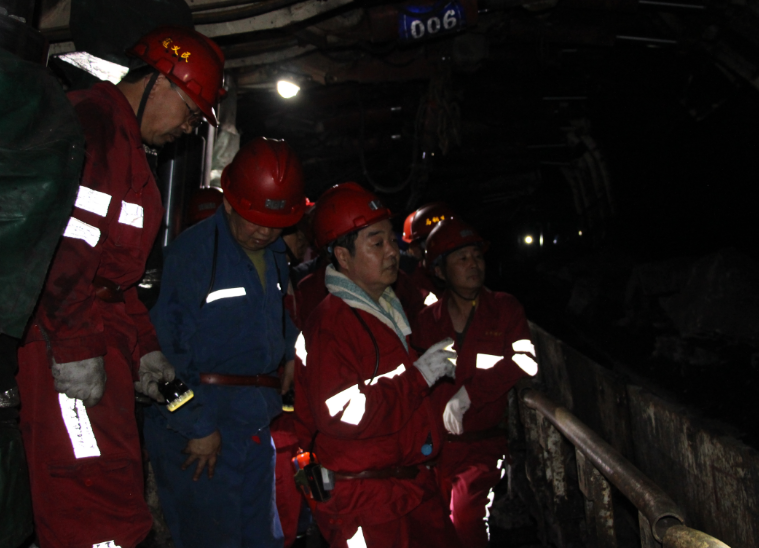 當(dāng)天下午13時(shí),劉水利一行到玉華礦,直接換上工裝,深入井下現(xiàn)場(chǎng)檢查指導(dǎo)安全生產(chǎn)工作。在通往2403綜采工作面的運(yùn)順巷道里,劉水利一邊查看巷道頂板支護(hù)、運(yùn)輸皮帶、巷道錨網(wǎng)支護(hù)等安全狀況,一邊詳細(xì)詢(xún)問(wèn)隨同的玉華礦黨政主要領(lǐng)導(dǎo)近期工作面生產(chǎn)作業(yè)現(xiàn)場(chǎng)遇到的頂板壓力增大、頂板破碎、工作面底板軟底等給安全生產(chǎn)造成的困難情況,仔細(xì)聽(tīng)了取該礦在遇到生產(chǎn)作業(yè)困難的情況下采取的具體措施和實(shí)施方案。在2403綜采工作面運(yùn)順端頭口,劉水利一邊仔細(xì)查看了綜采機(jī)頭區(qū)域轉(zhuǎn)載機(jī)、前部溜子、綜采支架和頂板、支架地板情況,一邊詢(xún)問(wèn)生產(chǎn)作業(yè)現(xiàn)場(chǎng)的綜采隊(duì)作業(yè)人員,了解工作面遇到的頂板壓力增大、頂板破碎、綜采支架在軟底的情況下生產(chǎn)作業(yè)困難狀況,并認(rèn)真聽(tīng)取現(xiàn)場(chǎng)作業(yè)人員提出的設(shè)備存在問(wèn)題、解決綜采支架移架、矯正傾斜、加快推采的辦法和意見(jiàn)。在回順端頭口,劉水利和綜采隊(duì)隊(duì)長(zhǎng)、書(shū)記、技術(shù)人員等現(xiàn)場(chǎng)作業(yè)人員現(xiàn)場(chǎng)召開(kāi)專(zhuān)題會(huì),一一聽(tīng)取現(xiàn)場(chǎng)作業(yè)人員對(duì)解決工作面當(dāng)前困難的建議。