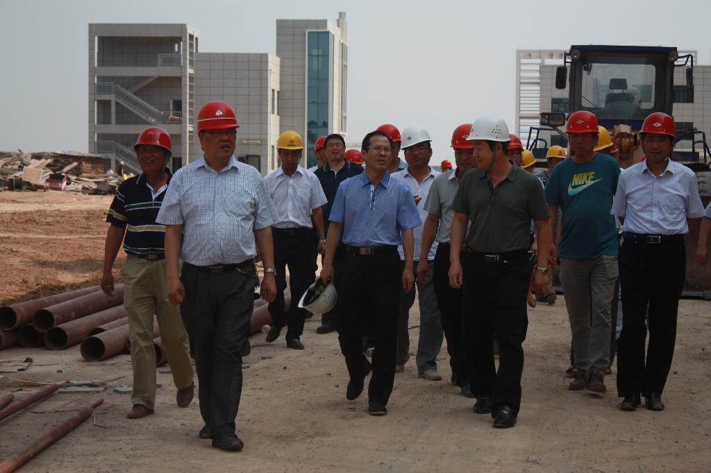 王蓬總經(jīng)理一行到達銅川基地后,深入施工現(xiàn)場,查看了綜合訓(xùn)練館、綜合樓等各單項工程的施工進展情況。