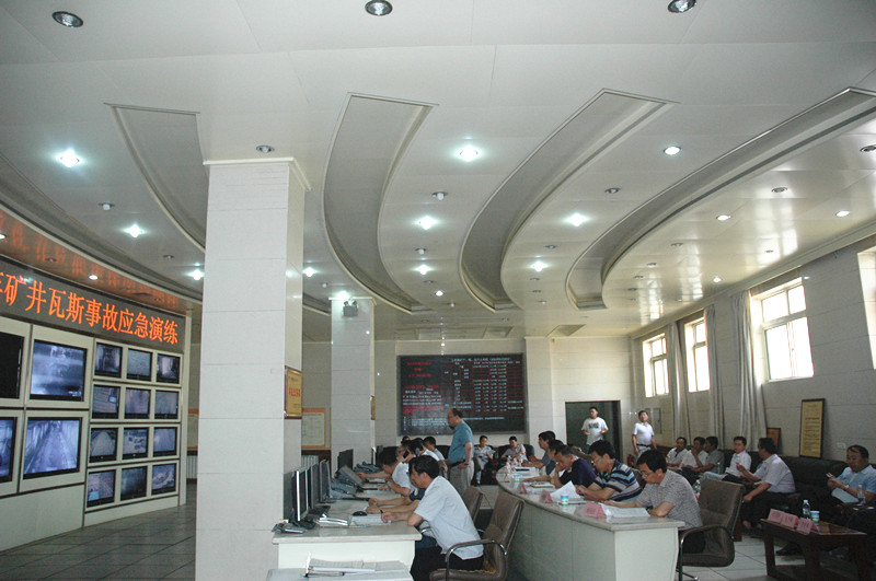 井下,救護隊員沉著應(yīng)戰(zhàn),進行更換風(fēng)筒,巷道探查、氣體檢查等工作;地面,指揮部迅速研究決定按照控制風(fēng)量方式開始排放瓦斯。時間一分一秒過去,瓦斯?jié)舛葟?.2%降到了1.7%、1.5%、0.6%、0.2%……11時52分,2405運順瓦斯排放結(jié)束,回風(fēng)流氣體恢復(fù)正常, “險情排除,可以恢復(fù)生產(chǎn)?!?演練總指揮話音剛落。調(diào)度室內(nèi)響起了熱烈的掌聲,此次演練取得圓滿成功。