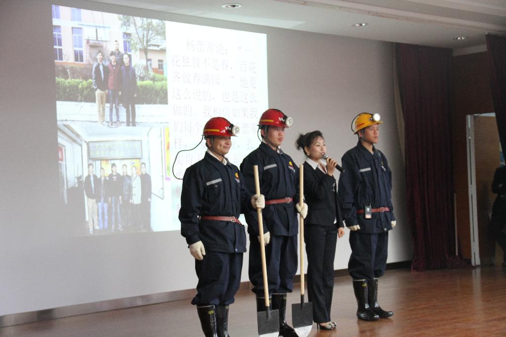 表彰會后,公司“愛我銅煤、奉獻(xiàn)青春”共青團(tuán)崗位風(fēng)采展拉開帷幕。陳家山礦參演節(jié)目《青崗員“新兵”的第一天》用小品的形式,展現(xiàn)了青崗員“新兵”的上崗第一天,在老師傅的帶領(lǐng)查隱患、糾違章,為礦井安全站崗放哨的事跡。供電公司帶來的演講《青春歲月伴理想、愛崗敬業(yè)譜華章》,詮釋了銅煤青年用熱血、激情、青春和夢想立足崗位做奉獻(xiàn)的浪漫華章。東坡礦小品《安全第一,一馬當(dāng)先》通過講述井下作業(yè)職工違章導(dǎo)致受傷使家庭不和諧,在青崗員的幫助和教育下成為按章作業(yè)的好職工,傳達(dá)出安全面前無小事,再大的命在安全面前也是渺小的理念。王石凹礦以情景劇《紅袖章》,演繹了一位在千尺井下帶著紅袖章的青崗員查隱患、糾違章、保安全的先進(jìn)事跡,充分展現(xiàn)了銅煤青崗員這道亮麗風(fēng)景線的精彩。機(jī)電公司演講的《立足崗位服務(wù)礦山》表達(dá)了機(jī)電青年服務(wù)礦山,踐行“我的崗位無差錯(cuò)、我的工作請放心”莊嚴(yán)承諾的決心。下石節(jié)礦情景劇《舞動的小紅帽》通過獨(dú)特的構(gòu)思,講述礦區(qū)志愿者幫助一位身患白血病孩子的真實(shí)故事,展現(xiàn)了礦區(qū)“小紅帽” 用行動踐行承諾、用青春詮釋責(zé)任,助力礦區(qū)和諧發(fā)展的感人事跡。救護(hù)大隊(duì)的崗位風(fēng)采展示為大家呈現(xiàn)出了一支苦練成鋼,在全國和省、市的比賽中屢獲殊榮,時(shí)刻準(zhǔn)備著的礦山救護(hù)隊(duì)伍的英姿。鐵運(yùn)公司帶來情景劇《小二的煩惱》,以詼諧幽默的方式,告訴大家要算好違章作業(yè)“經(jīng)濟(jì)賬”、“名譽(yù)賬”、“家庭賬”和“人生帳”。鴨口公司人物欄目劇《青春戰(zhàn)線上的實(shí)踐者》,通過對先進(jìn)人物事跡的再現(xiàn),讓一位樸實(shí)的礦山80后建設(shè)者,一位可愛的青春戰(zhàn)線上的實(shí)踐者的形象躍動在大家眼前。一五三廠演講的《讓青春的夢想在崗位綻放》,唱響銅煤礦區(qū)的年輕人將自己的夢想嵌入渭北千尺井下,一五三廠的青年將自己的夢想奉獻(xiàn)在發(fā)展火工事業(yè)的拼搏中的壯歌。
