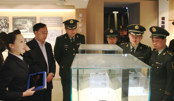 在展覽館講解員的講解下,消防支隊(duì)官兵分別對(duì)展覽館印象廳、溯源廳、發(fā)展廳、奮進(jìn)廳進(jìn)行了參觀??吹接∠髲d氣勢(shì)恢宏的《礦工萬(wàn)歲》大型雕塑,官兵們對(duì)煤礦工人奮戰(zhàn)地層深處,開(kāi)掘?yàn)踅鸬挠⑿廴合裆罡姓鸷?,敬佩不已。觀看了展示銅煤半個(gè)多世紀(jì)輝煌歷程的環(huán)幕投影紀(jì)實(shí)片《百里銅煤耀華夏》之后,官兵們對(duì)銅煤的艱苦創(chuàng)業(yè)歷程和取得的輝煌成就有了更為直觀和全面的了解。面對(duì)展館展示的雞娃燈、疙瘩鞭、霸王窯等相關(guān)實(shí)物資料,舊社會(huì)礦工生活的艱辛深刻印入了官兵們心中。面對(duì)毛澤東、周恩來(lái)等黨和國(guó)家領(lǐng)導(dǎo)人接見(jiàn)銅川礦務(wù)局英模人物的珍貴照片,以及在銅川礦區(qū)誕生的《唱支山歌給黨聽(tīng)》、《平凡的世界》等文化精品,官兵們對(duì)歷屆礦山建設(shè)者扎根礦山、艱苦創(chuàng)業(yè)、頑強(qiáng)拼搏的精神深為感動(dòng)和鼓舞。