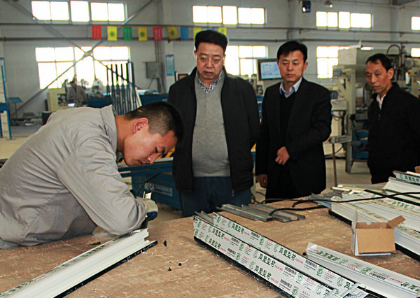 在欣塑公司,該公司領(lǐng)導(dǎo)就項目建設(shè)、設(shè)備調(diào)試、產(chǎn)品種類、規(guī)格、用途和產(chǎn)品銷售過程中遇到的困難等情況向檢查組進行了匯報。薛鳴邊聽匯報邊實地察看了該公司型材、管材、組裝車間,并詳細了解了當(dāng)前該公司存在的困難,并提出了指導(dǎo)性的意見和建議。