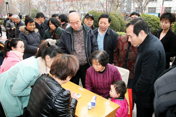 上午10時左右,公司黨委書記王蓬,黨委副書記、紀委書記徐捷與黨群有關部門負責人也興致盎然地來到了活動現場,與正在現場忙碌的志愿者和服務對象進行了深入交流。在奧博集團志愿者服務點,王書記看到手機免費貼膜時,饒有興趣地拿出自己的手機,向青年志愿者咨詢貼膜的詳細情況,現場氣氛活躍融洽。在直屬工委服務點,王書記和徐書記詳細觀摩了電子測糖儀查體的全過程,親切叮囑查體老人要注意身體健康。隨后,兩位領導逐一到各單位的青年志愿者服務點詳細了解活動開展情況,提出了要求和建議,并對此次活動的成效給予了充分的肯定。
