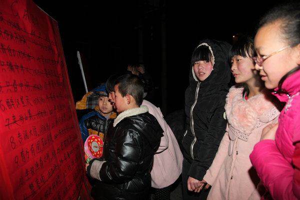 猜謎現(xiàn)場,老少男女聚集在該礦工會精心挑選的百余條包含安全寄語、生活常識、成語字謎以及人名地名的謎語前面,有獨自冥思苦想思索著謎底的,有三三兩兩在笑聲中熱烈討論著謎面的。不時人群中傳來一陣陣的歡呼,那是猜對謎底的“幸運人兒”獲得禮品時引發(fā)的贊嘆。此次活動,不僅豐富了礦區(qū)職工群眾的文化生活,促進了彼此間的相互交流,亦使大家在學(xué)習(xí)安全知識的氛圍中度過了一個歡樂喜慶祥和的元宵佳節(jié)。