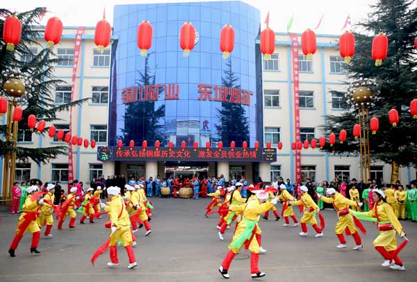 (李勝會(huì) 李銅川 李銀鎖報(bào)道)農(nóng)歷大年初一,喧天的鑼鼓在日新月異的金華山礦區(qū)回蕩,恭祝礦山人民新年事事如意,馬到成功;歡快的秧歌讓礦區(qū)干部職工精神振奮,增強(qiáng)戰(zhàn)勝煤炭市場(chǎng)嚴(yán)寒的信心和勇氣;甜美的歌兒唱出礦區(qū)人民對(duì)幸福生活的美好憧憬,實(shí)現(xiàn)中國(guó)夢(mèng)、實(shí)現(xiàn)礦山夢(mèng)的的心聲。