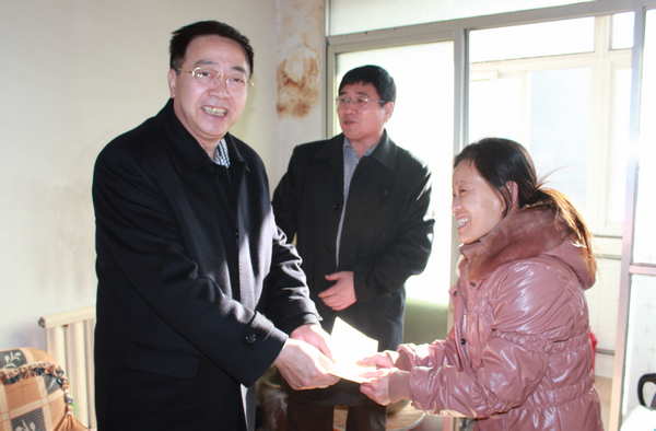 在困難職工王文生家里,劉水利在和王文生交談中了解到,王文生八十多歲的父親身患重病,是一名有著三十多年工齡的老礦工時(shí),叮囑王文生要克服暫時(shí)的困難,安心工作,以老父親為榜樣,為金華山礦騰飛發(fā)展做貢獻(xiàn)。