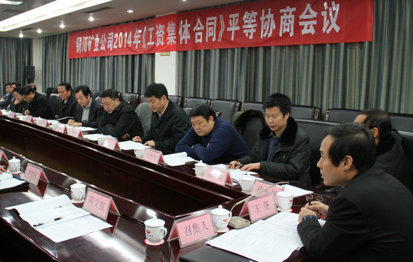 為了進(jìn)一步推進(jìn)企業(yè)工資收入分配制度改革,規(guī)范企業(yè)工資集體協(xié)商行為,保障企業(yè)與職工雙方的合法權(quán)益,促進(jìn)公司勞動關(guān)系和諧穩(wěn)定,維護(hù)企業(yè)正常的安全生產(chǎn)和工作秩序,元月3日上午,公司在煤業(yè)賓館會議室召開2014年《工資集體合同》平等協(xié)商會議。公司黨委書記王蓬主持會議。企業(yè)方代表為公司領(lǐng)導(dǎo)劉水利、師同民、薛鳴、封建利及規(guī)劃、安監(jiān)、勞資、企改、財務(wù)等部門負(fù)責(zé)人,礦區(qū)工會主席劉啟科攜職工代表等代表工會方出席會議,公司兩辦、紀(jì)委、組織、宣傳、人事、團(tuán)委、報社等負(fù)責(zé)人列席了會議。