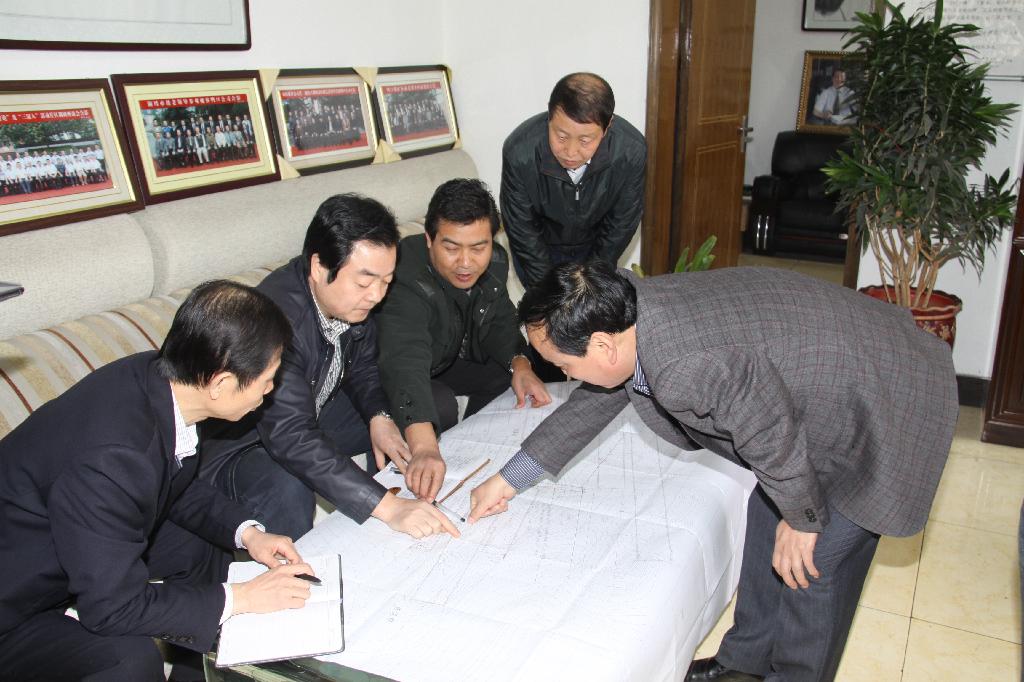 劉水利一行認(rèn)真查看工作面圖紙