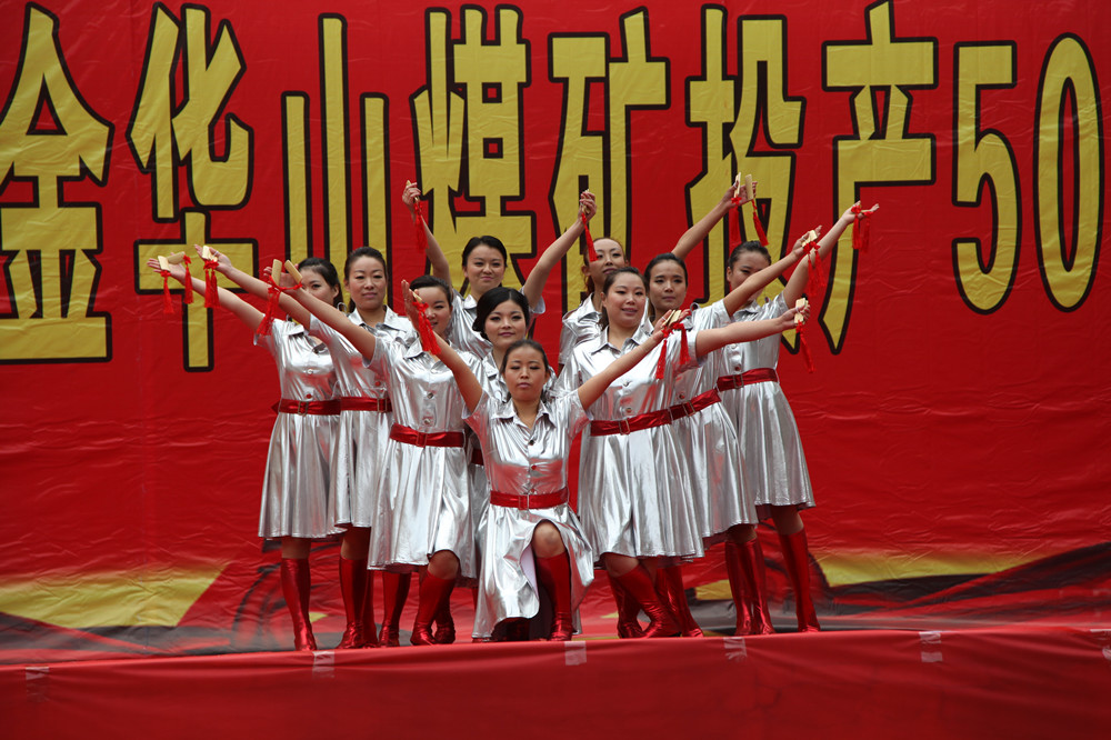 上午8時整,金華山礦民間秧歌隊在該礦辦公大院精彩亮相,拉開了該礦慶祝建礦五十周年慶典活動的序幕。上午9時整,金華山礦慶祝建礦投產(chǎn)50周年慶典活動在俱樂部廣場正式舉行。開場舞《歡聚一堂》道出了礦區(qū)人民歡聚一堂,慶祝金華山礦經(jīng)歷半個世紀風雨兼程,歷經(jīng)坎坷,用火熱的青春和執(zhí)著的信念錘煉著光榮的使命,鑄就輝煌的光輝歷程,表達了礦區(qū)人民心中最美好的祝愿。