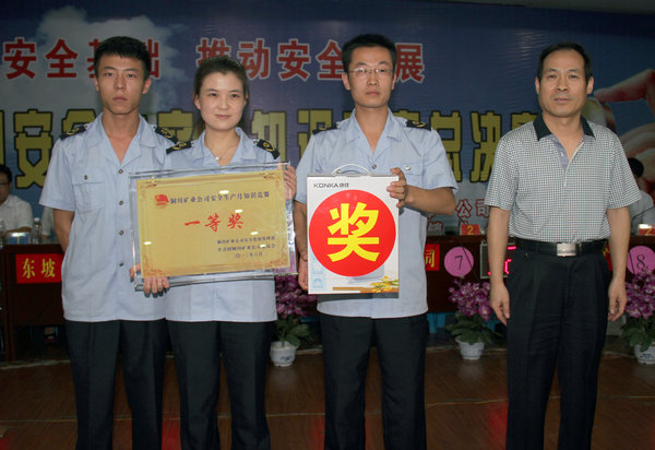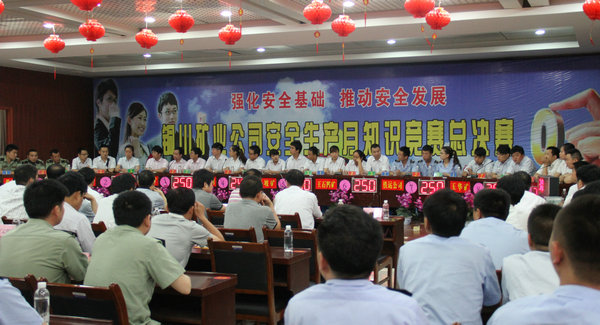 決賽分為個人必答題、集體必答題、判斷題、搶答題和風(fēng)險題五個環(huán)節(jié)。賽題包含煤礦安全生產(chǎn)法律法規(guī)、煤礦安全生產(chǎn)“雙七條”、煤礦采、掘、機、運、通和共青團(tuán)知識的方方面面,題目靈活,重點突出,面廣意深。賽場上,參賽隊員個個精神飽滿,認(rèn)真聽題,冷靜思考,積極作答,積分器上的比分交替變化。場下,觀眾陣陣掌聲成為對參賽隊員的最好支持和鼓勵。在緊張激烈的競賽活動中,還穿插了觀眾有獎問答,贏得陣陣掌聲。經(jīng)過緊張激烈角逐,鐵運公司代表隊獲得決賽一等獎,下石節(jié)礦、東坡礦和金華山礦獲得二等獎,其他單位榮獲三等獎。 與會公司領(lǐng)導(dǎo)為獲獎代表隊和優(yōu)秀組織單位分別頒發(fā)了獎牌和獎品。