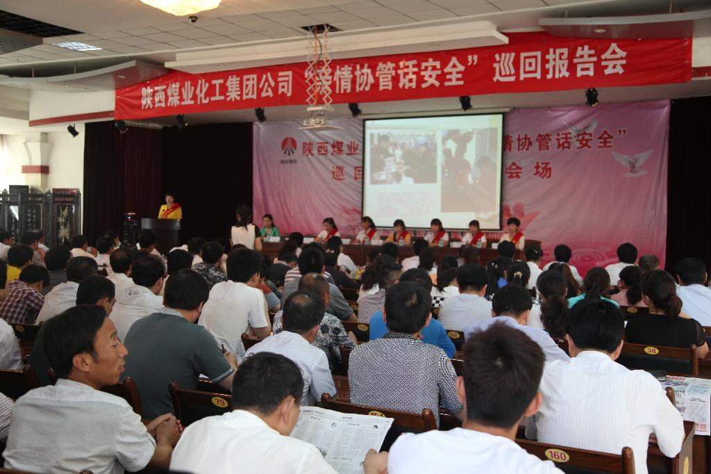 6月26日,陜西煤業(yè)化工集團(tuán)公司“親情協(xié)管話安全”巡回報(bào)告會(huì)銅川會(huì)場(chǎng)報(bào)告會(huì)在王石凹煤礦舉行。陜煤集團(tuán)公司工會(huì)女職委副主任石秀云、銅川礦區(qū)工會(huì)有關(guān)人員、王石凹礦黨政主要領(lǐng)導(dǎo)以及公司所屬礦井單位的工會(huì)主席、安監(jiān)處長(zhǎng)、女工主任和王石凹礦部分礦工、家屬、協(xié)管員代表共計(jì)200多人聆聽了報(bào)告會(huì),報(bào)告會(huì)由陜煤集團(tuán)公司工會(huì)女職委副主任石秀云主持。