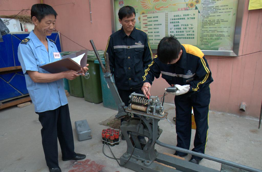 電力專業(yè)組實際操作比賽分為二大部分,選手首先進行對裁判員給出的圖紙進行接線,并確保連線暢通。只見參賽選手埋頭作業(yè),仔細觀察圖紙,細心操作。其次,要對公司河濱路變壓器實地進行實際的日常維護、定期檢查的內(nèi)容并對停、送電的規(guī)范的執(zhí)行進行操作,選手們介紹變壓器的聲音洪亮,數(shù)據(jù)準確,動作熟練,并全過程運用“雙述”工作法。