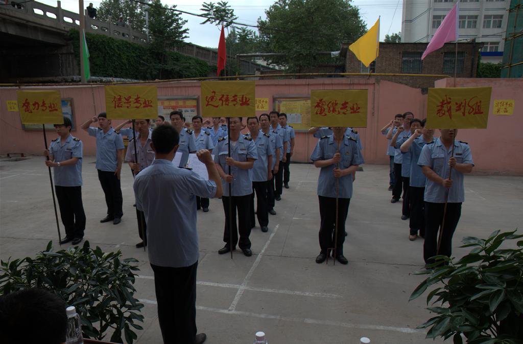 該段首先對4個工種的參賽選手進行了涉及專業(yè)技術知識、應知應會、安全措施等內(nèi)容的閉卷理論考試。上午9時,來自電務段各工區(qū)參加崗位練兵的18名職工及4名裁判員列隊進入會場,進行了班前禮儀的展示,經(jīng)過前期的精心準備,參練人員個個摩拳擦掌,躍躍欲試,紛紛“亮劍”,將在賽場上一決高下。在賽前動員會上,分公司經(jīng)理孫建軍作了講話,預祝比賽圓滿成功,各位選手取得優(yōu)異的成績。隨后,裁判員代表進行了宣誓。該分公司黨委書記高德富宣布:“電務段2013年度崗位練兵、技術比武活動現(xiàn)在開始?!备鲄①愋〗M在裁判員的帶領下依次進入劃分場地,同時開始比武。比武場上齊“亮劍”