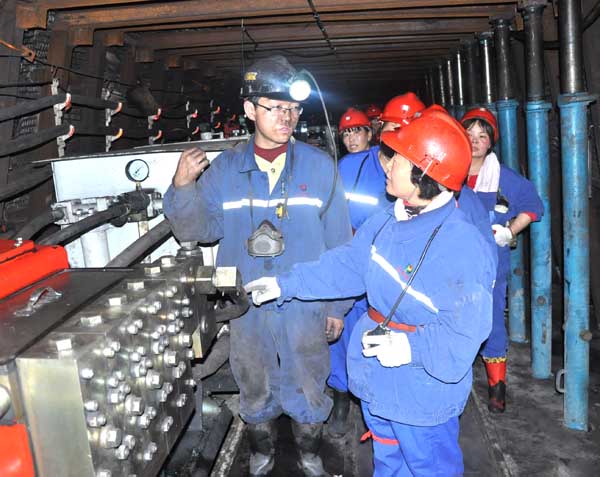 經(jīng)過(guò)2個(gè)多小時(shí)的跋涉,東坡礦21名女工家屬來(lái)到井下903采煤工作面。這是該礦“安全生產(chǎn)月”活動(dòng)開(kāi)展的“感受井下艱辛,情牽一線職工”的家屬下井體驗(yàn)活動(dòng)。