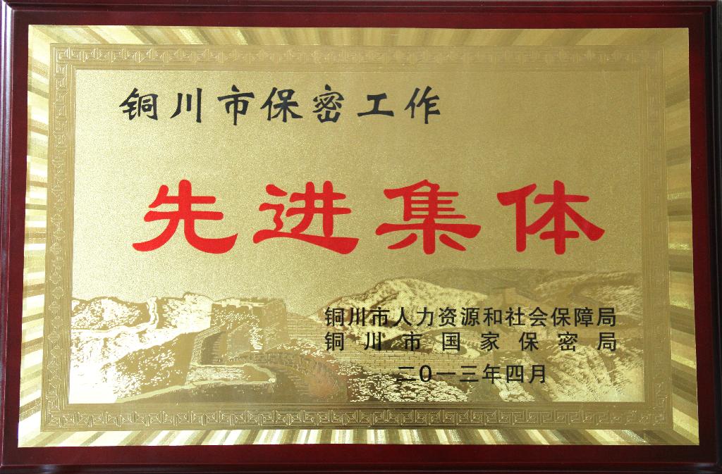 4月27日,在銅川市保密工作會上,公司被銅川市人力資源和社會保障局、銅川市國家保密局授予“銅川市保密工作先進(jìn)集體”榮譽稱號。