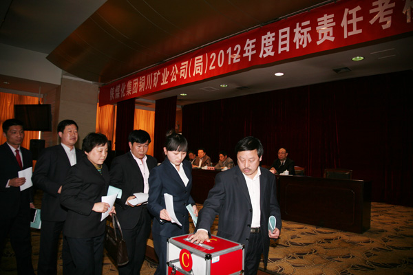 3月14日,陜煤化集團(tuán)黨委副書記、紀(jì)委書記王海帆為組長(zhǎng),副總經(jīng)理朱周岐、劉強(qiáng)為副組長(zhǎng)的集團(tuán)第四考核組蒞臨銅川礦業(yè)公司,對(duì)公司2012年度目標(biāo)責(zé)任完成情況進(jìn)行全面考核。下午2時(shí),召開陜煤化集團(tuán)公司對(duì)銅川礦業(yè)公司(局)2012年度目標(biāo)考核大會(huì),公司黨政領(lǐng)導(dǎo)班子成員、機(jī)關(guān)各部門以及基層各單位黨政負(fù)責(zé)人及職工代表共100余人參加了考核會(huì)議。