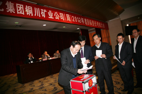 會(huì)上,全體與會(huì)人員還以無記名投票方式對(duì)銅川礦業(yè)公司集團(tuán)班子整體工作、領(lǐng)導(dǎo)個(gè)人履職,廠務(wù)公開民主管理工作等情況進(jìn)行測(cè)評(píng),并民主推薦銅川礦業(yè)公司領(lǐng)導(dǎo)班子后備干部。會(huì)后,陜煤化集團(tuán)考核組對(duì)銅川礦業(yè)公司2012年度經(jīng)營業(yè)績(jī)、黨建工作基礎(chǔ)資料進(jìn)行了現(xiàn)場(chǎng)查閱。