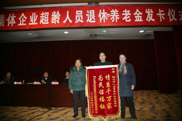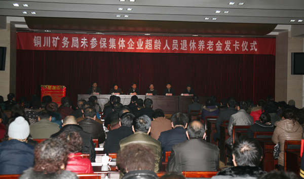 1月18日上午10時(shí),銅川礦務(wù)局舉辦未參保超齡人員退休養(yǎng)老金卡發(fā)放儀式。未參保超齡人員代表獻(xiàn)上情真意切的感謝信,分別向市人力資源和社會(huì)保障局、市養(yǎng)老經(jīng)辦處、礦務(wù)局黨政工團(tuán)組織贈(zèng)送錦旗。市社會(huì)保障局、市養(yǎng)老保險(xiǎn)經(jīng)辦處的負(fù)責(zé)同志也在未參保超齡人員生活補(bǔ)貼發(fā)放儀式上講了話。局勞動(dòng)服務(wù)公司經(jīng)理宋乃鈺主持發(fā)放儀式。